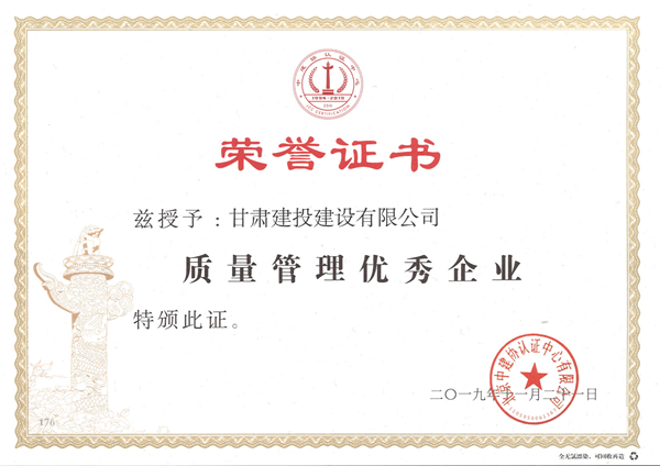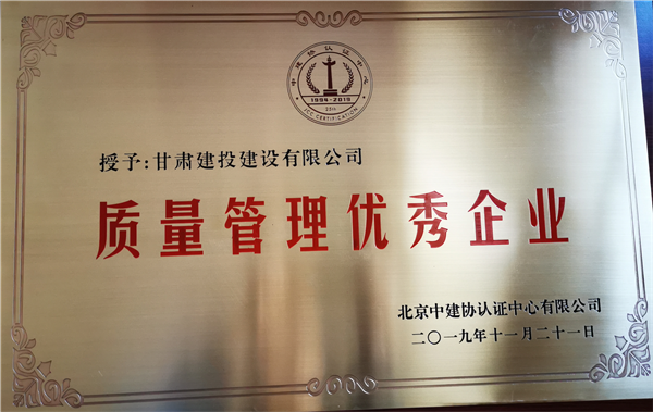 建設(shè)公司獲“質(zhì)量管理優(yōu)秀企業(yè)”榮譽(yù)稱號(hào)