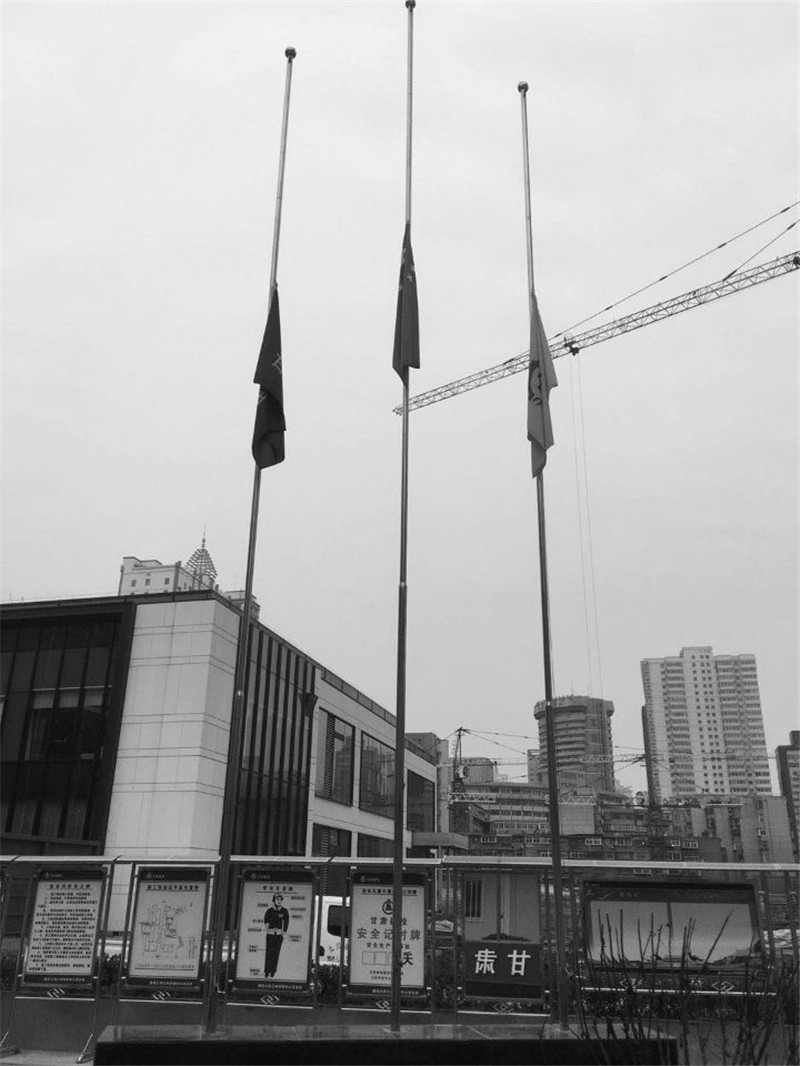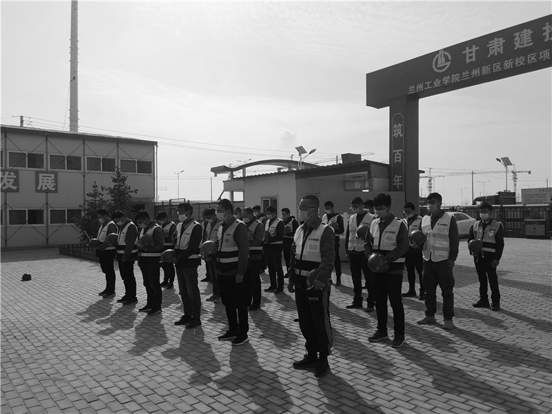建設(shè)公司白塔寺人防疏散基地項(xiàng)目、西北師范大學(xué)附屬中學(xué)新建學(xué)生公寓樓項(xiàng)目、蘭州新區(qū)瑞嶺名郡項(xiàng)目、蘭州環(huán)球中心項(xiàng)目、天水工業(yè)博物館項(xiàng)目、定西市安定區(qū)南環(huán)路棚戶區(qū)改造項(xiàng)目、榆中阡陌院項(xiàng)目、渭源縣城北環(huán)路東段棚戶區(qū)改造工程項(xiàng)目等施工生產(chǎn)一線項(xiàng)目部在當(dāng)天自發(fā)降半旗默哀。上午10時(shí),現(xiàn)場(chǎng)作業(yè)車?guó)Q響,全體人員凝神肅立,表達(dá)對(duì)犧牲烈士和逝世同胞的崇高敬意和深切哀思。