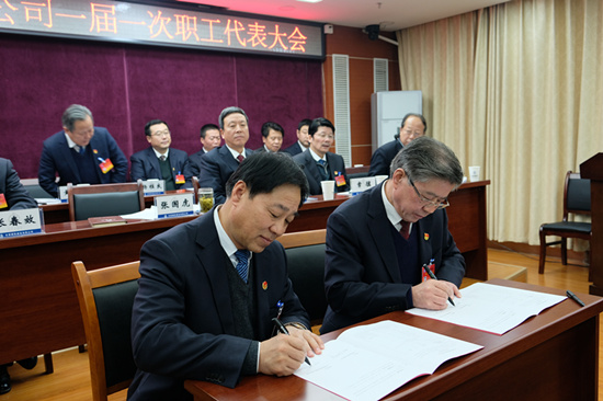 張國(guó)虎傳達(dá)了集團(tuán)總公司2018年工作會(huì)議精神并做了重要講話(huà):此次一屆一次職工代表大會(huì)是在認(rèn)真學(xué)習(xí)貫徹黨的十九大精神,全面落實(shí)集團(tuán)總公司2018年工作會(huì)議要求,部署深化改革舉措、鞏固企業(yè)發(fā)展基礎(chǔ)、提升企業(yè)發(fā)展質(zhì)量的一次重要會(huì)議,也是公司成立以來(lái)召開(kāi)的首次職代會(huì),會(huì)議時(shí)間雖短,但主題鮮明,內(nèi)容豐富,重點(diǎn)突出,成效很好。達(dá)到了認(rèn)清形勢(shì)、統(tǒng)一思想、明確任務(wù)、鼓舞干勁的目的。就如何貫徹好集團(tuán)總公司和公司的各項(xiàng)決策部署他提出三方面的意見(jiàn):一是大力加強(qiáng)黨的建設(shè),認(rèn)真落實(shí)全面從嚴(yán)治黨要求。要認(rèn)真學(xué)習(xí)宣傳貫徹落實(shí)黨的十九大精神,落實(shí)好管黨治黨責(zé)任,做好抓基層、打基礎(chǔ)的工作,高標(biāo)準(zhǔn)嚴(yán)要求管理好干部,同時(shí)要持續(xù)改進(jìn)作風(fēng), 持之以恒正風(fēng)肅紀(jì);二是搶抓機(jī)遇,堅(jiān)定發(fā)展信心。正確認(rèn)識(shí)和分析自身的優(yōu)勢(shì)和不足,貫徹好發(fā)展戰(zhàn)略和規(guī)劃,理清工作思路,確保企業(yè)健康發(fā)展;三是認(rèn)真抓好“兩會(huì)”精神的貫徹落實(shí)。要統(tǒng)一思想,在凝聚發(fā)展合力上抓落實(shí),突出重點(diǎn),在強(qiáng)化保障措施上抓落實(shí),真抓實(shí)干,在“提質(zhì)增效”上抓落實(shí)。