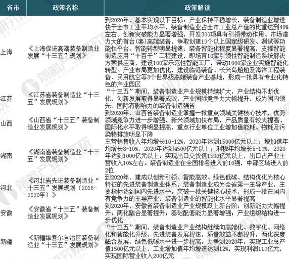 各省市高端裝備制造政策匯總及解讀