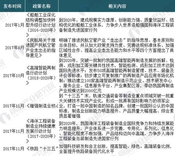 圖表1:國(guó)家高端裝備制造政策匯總(一)