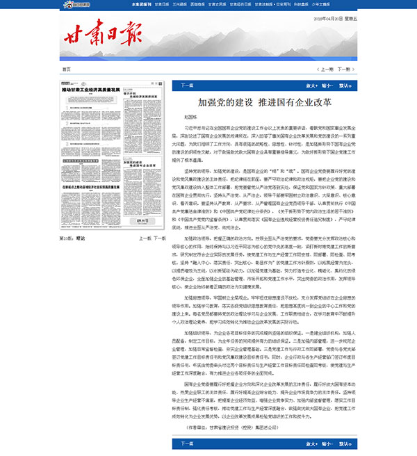甘肅日?qǐng)?bào):加強(qiáng)黨的建設(shè) 推進(jìn)國(guó)有企業(yè)改革