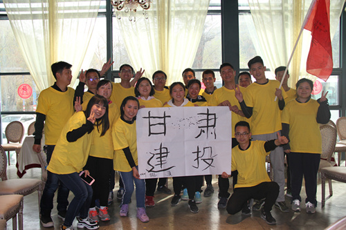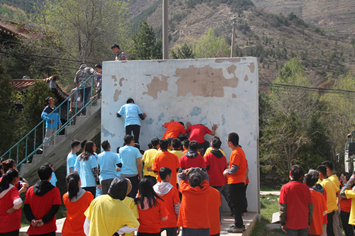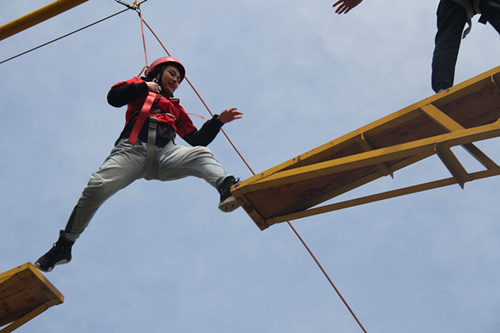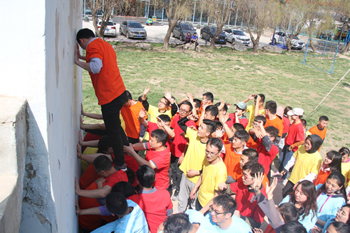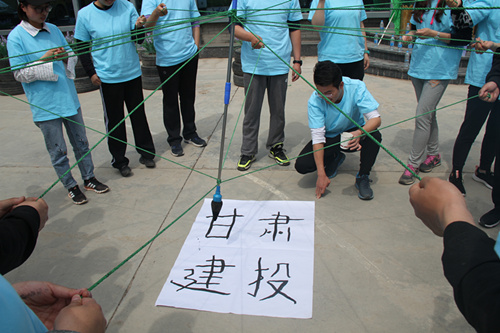 隨后,在教練老師的指導(dǎo)下,大家共同完成了神筆馬良、高空斷橋、趾壓板、呼吸的力量、畢業(yè)墻等拓展訓(xùn)練項(xiàng)目。在“高空斷橋”項(xiàng)目中,大家在教練的指導(dǎo)下穿上保險(xiǎn)衣扣上保險(xiǎn)繩,從下往上爬到8米高的跳板上,跳過距離1.2米平臺(tái)板并再次返回。“斷橋一小步,人生一大步”,這個(gè)項(xiàng)目通過學(xué)員打破心理舒適區(qū)生理反應(yīng),在團(tuán)隊(duì)的鼓勵(lì)下成功一躍,達(dá)到超越自我,挖掘潛力的目的。在“神筆馬良”項(xiàng)目中,大家用數(shù)十條繩子控制的毛筆在地上一張一平米大小的紙上書寫了“甘肅建投”四個(gè)大字,充分訓(xùn)練了參訓(xùn)人員的協(xié)調(diào)、溝通能力,有效的建立了團(tuán)隊(duì)合作意識(shí)。在令人記憶猶新的“畢業(yè)墻”這個(gè)環(huán)節(jié),全體隊(duì)員在不借助任何外力和輔助工具的情況下徒手跨越過4米的高墻,搭人墻的同事用自己的身體為其他隊(duì)員的順利攀爬打下基礎(chǔ),已經(jīng)成功翻越的隊(duì)員奮力協(xié)助攀爬隊(duì)員,大家不分彼此、互相奉獻(xiàn),互相依靠,深刻感受到了團(tuán)隊(duì)力量的強(qiáng)大。每位參訓(xùn)學(xué)員在每個(gè)項(xiàng)目都全情投入,互助互信,一起面對(duì)困難和挑戰(zhàn),分享成功和喜悅。