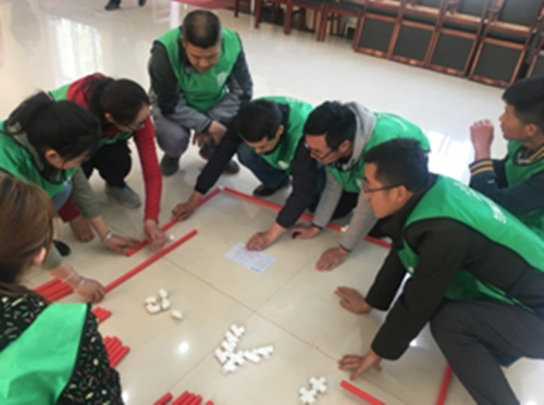 隨后,大家在興隆山拓展訓(xùn)練營(yíng)開展了豐富多彩的素質(zhì)拓展訓(xùn)練活動(dòng)。大家熱情高漲,全情投入的為自己的團(tuán)隊(duì)出謀劃策,起隊(duì)名、選隊(duì)長(zhǎng)、定隊(duì)歌、設(shè)隊(duì)徽,通過“鼓動(dòng)人心、目標(biāo)市場(chǎng)、漢諾塔、趾壓板”等拓展項(xiàng)目,使大家加深了同事之間的溝通聯(lián)系,增強(qiáng)了團(tuán)隊(duì)的凝聚力,提升了團(tuán)結(jié)協(xié)作意識(shí)。特別是在“呼吸的力量”環(huán)節(jié)中,大家相互溝通、團(tuán)結(jié)協(xié)作,通過看圖識(shí)圖,進(jìn)行前期策劃分工,明確責(zé)任,過程管理,充分發(fā)揮了建筑人的特長(zhǎng)。
