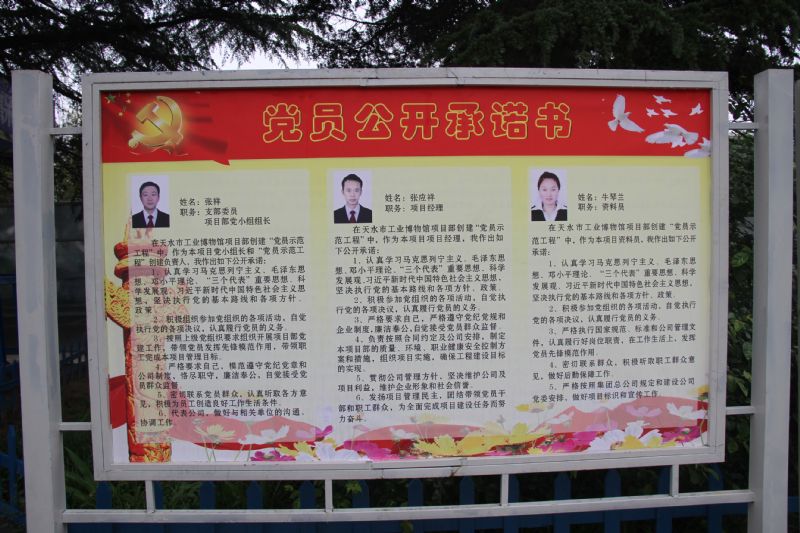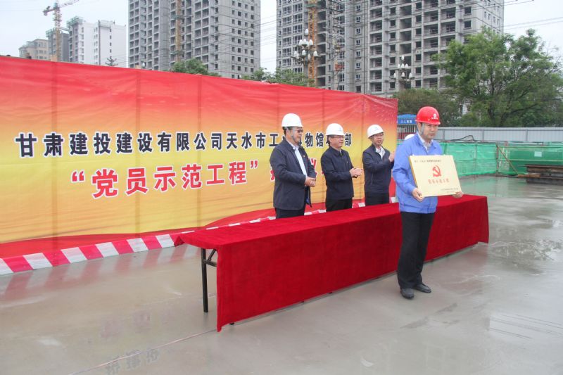 張國虎代表公司黨委向項目部授牌并做了重要講話,他指出,八公司天水市工業(yè)博物館項目自開工以來,嚴格貫徹執(zhí)行國家有關安全生產和技術質量法律法規(guī)及相關規(guī)定,積極貫徹落實公司黨委有關加強項目黨建的工作要求,不斷健全完善項目部學習培訓、安全質量管理等制度,強化質量控制、進度控制和成本控制,重視安全文明施工,不斷創(chuàng)新職工活動載體,規(guī)范項目黨員組織生活,在培養(yǎng)技術能手和管理能手上成效明顯,項目黨員的先鋒模范作用在工程建設全過程中有效發(fā)揮。