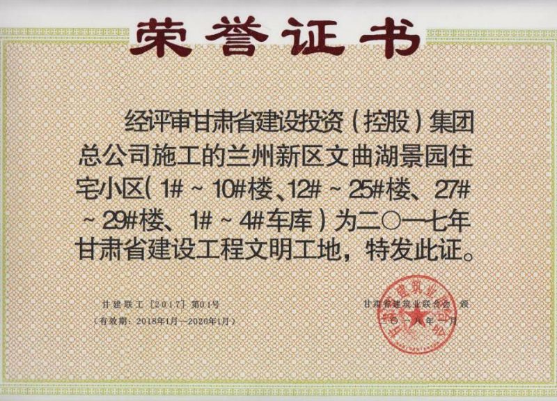 自2014年以來,二安公司承建了平?jīng)雎肺Ef房改造工程2#商住房項(xiàng)目的安裝工程、蘭州新區(qū)石化產(chǎn)業(yè)園7#樓項(xiàng)目安裝工程、蘭州新區(qū)文曲湖景園住宅小區(qū)4#、10#樓項(xiàng)目安裝工程、天水上尚宅一期三標(biāo)段5#、9#、8#、12#樓項(xiàng)目安裝工程、天水總部經(jīng)濟(jì)城7號(hào)樓項(xiàng)目安裝工程等10余項(xiàng)項(xiàng)目安裝。其中2015年蘭州新區(qū)石化產(chǎn)業(yè)園區(qū)安置房項(xiàng)目被評(píng)為甘肅省建設(shè)工程文明工地;2016年平?jīng)雎肺Ef房改造房(建工瑞景2#樓)項(xiàng)目,獲得甘肅省AAA級(jí)安全文明工地、飛天獎(jiǎng);天水總部經(jīng)濟(jì)城二期7#樓項(xiàng)目,獲得甘肅省AAA級(jí)安全文明工地;2017年文曲湖4#、10#樓工地被甘肅建投建設(shè)有限公司評(píng)為2016年度優(yōu)秀項(xiàng)目經(jīng)理部;2017年天水上尚宅榮獲甘肅省文明工地稱號(hào);2018年經(jīng)評(píng)審甘肅省建設(shè)投資(控股)集團(tuán)總公司施工的蘭州新區(qū)文曲湖景園住宅小區(qū)(1#-10#、12#-25#、27#-29#、1#-4#車庫(kù))為2017年甘肅省建設(shè)工程文明工地;深受建設(shè)單位和社會(huì)各界的信賴與好評(píng)。全公司涌現(xiàn)出一大批優(yōu)秀項(xiàng)目經(jīng)理部、優(yōu)秀項(xiàng)目經(jīng)理和先進(jìn)個(gè)人。