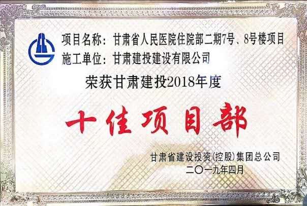 5月13日,甘肅建投召開2019年第二次質(zhì)量安全生產(chǎn)會,會上對獲得“十佳項(xiàng)目部”的單位進(jìn)行了表彰,甘肅省人民醫(yī)院住院部二期7號樓和8號樓項(xiàng)目榮獲甘肅建投2018年度“十佳項(xiàng)目部”稱號。