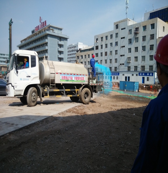 現(xiàn)場辦公室、現(xiàn)場圍墻、基坑四周、主體結(jié)構(gòu)防護(hù)欄桿等設(shè)施實(shí)施占地面積小,組裝、拆除靈活、方便,回收利用率高,具有可觀的經(jīng)濟(jì)、環(huán)境和社會效益。項(xiàng)目部在土方開挖階段,嚴(yán)格按照市委市政府大氣治理相關(guān)文件要求,積極落實(shí)各項(xiàng)治污防塵措施,編制“施工現(xiàn)場揚(yáng)塵治污方案”,依照方案實(shí)施并根據(jù)揚(yáng)塵監(jiān)測數(shù)據(jù)不斷改進(jìn),有效降低了土方施工對醫(yī)院及周邊環(huán)境的揚(yáng)塵污染,切實(shí)達(dá)到了市委市政府要求的“6個100%”,確保了本工地防塵治污達(dá)到要求,受到各方一致好評,被蘭州市“蘭州藍(lán)”宣傳片選做樣板工地。