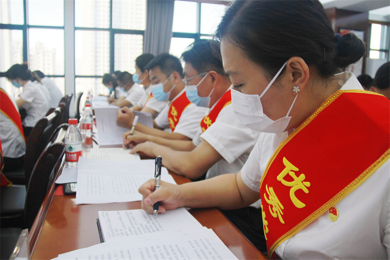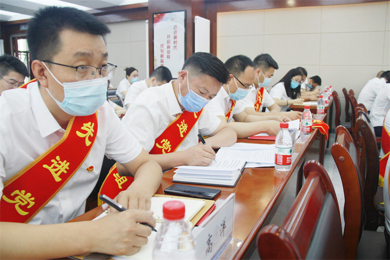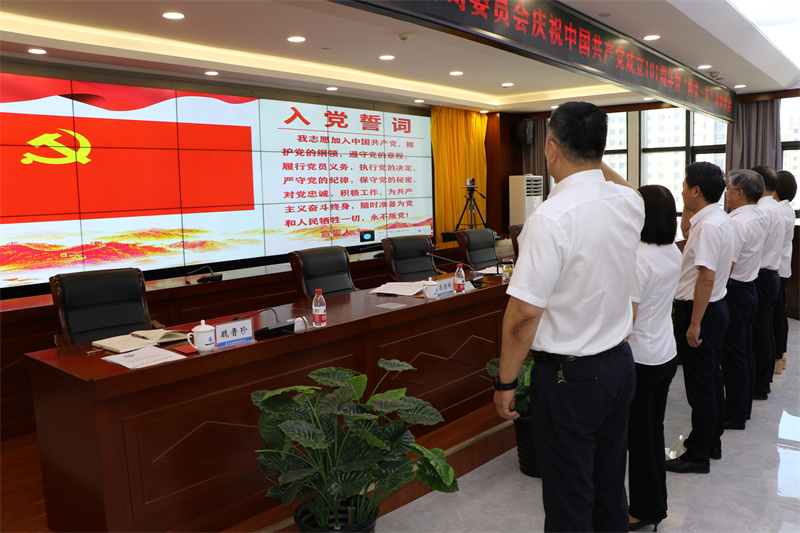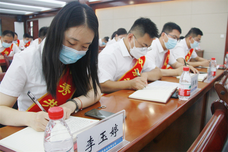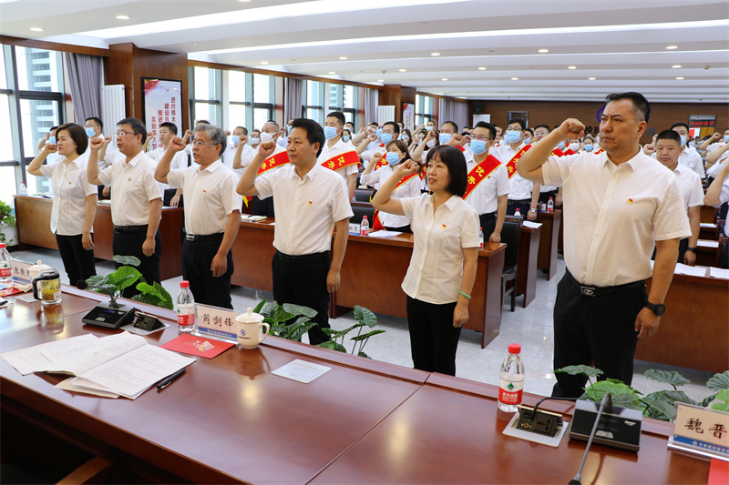 會(huì)上,在黨委書(shū)記、董事長(zhǎng)張國(guó)虎的帶領(lǐng)下,全體黨員面向黨旗莊嚴(yán)宣誓——老黨員重溫入黨誓詞,新黨員進(jìn)行入黨宣誓。