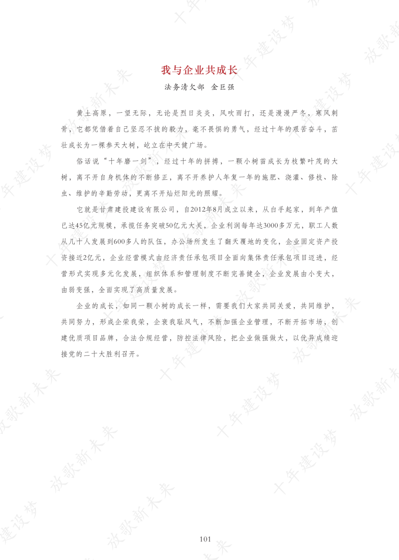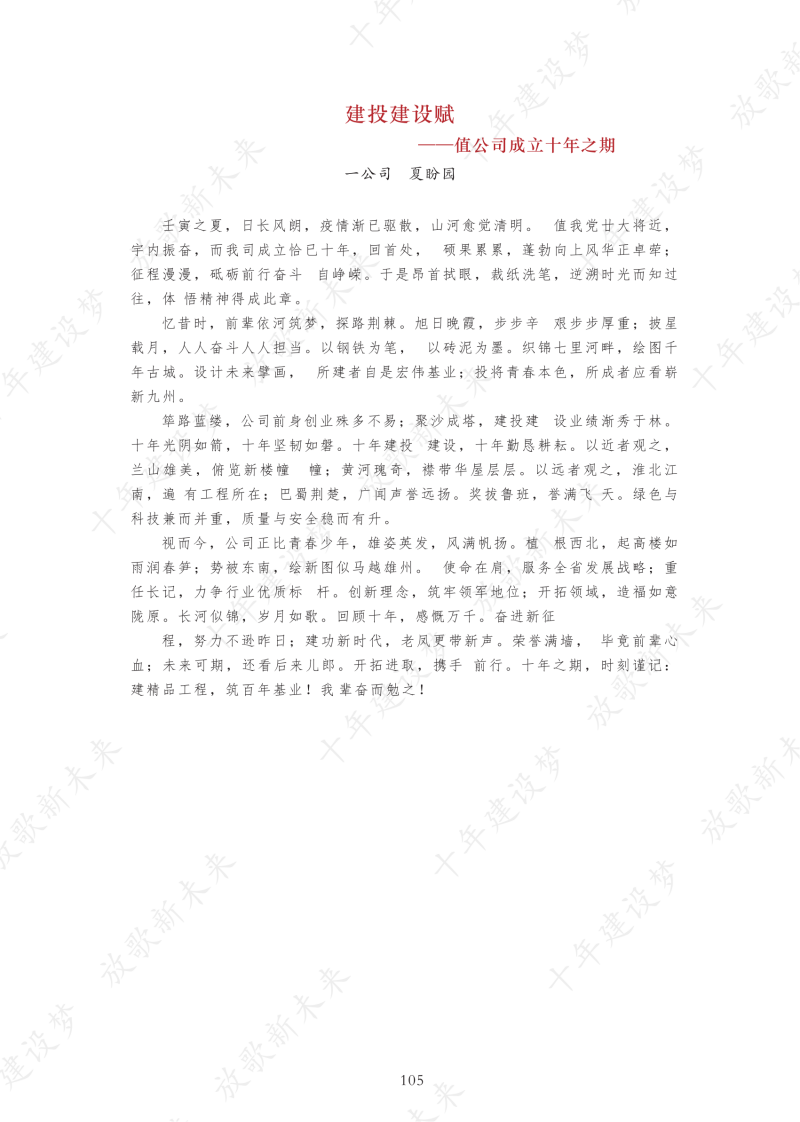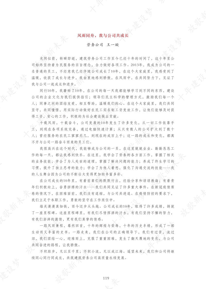 借此機會,感謝廣大職工對企業(yè)做出的巨大貢獻,感謝建設公司黨政組織和領導對工會工作的大力支持!在這屬于建設者、奮斗者的火熱時節(jié),讓我們總結歷史、傳承文化、懷念感恩、發(fā)揚精神、推動企業(yè)邁入下一個十年高質量發(fā)展新征程!