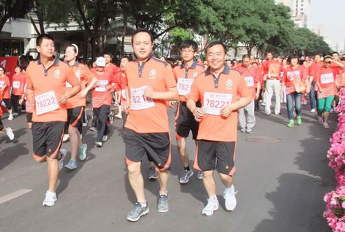6點(diǎn)鐘,甘肅建投職工早已排成整齊的隊(duì)列在指定位置各就各位,隨著航拍飛機(jī)一次次在中心廣場(chǎng)上空盤(pán)旋,甘肅建投職工的歡呼聲響徹天地。專業(yè)運(yùn)動(dòng)員率先開(kāi)跑之后,甘肅建投代表隊(duì)處于眾多的方陣中的第二方陣,425名從集團(tuán)所屬各單位抽調(diào)的職工身穿印有“甘肅建投”字樣的運(yùn)動(dòng)服裝,30人一排,邁著強(qiáng)有力的步伐,進(jìn)行5公里迷你馬拉松的比賽,全體運(yùn)動(dòng)員互相幫助、互相扶持、互相激勵(lì),順利完成了賽程,到達(dá)終點(diǎn),體現(xiàn)了甘肅建投的團(tuán)隊(duì)精神。