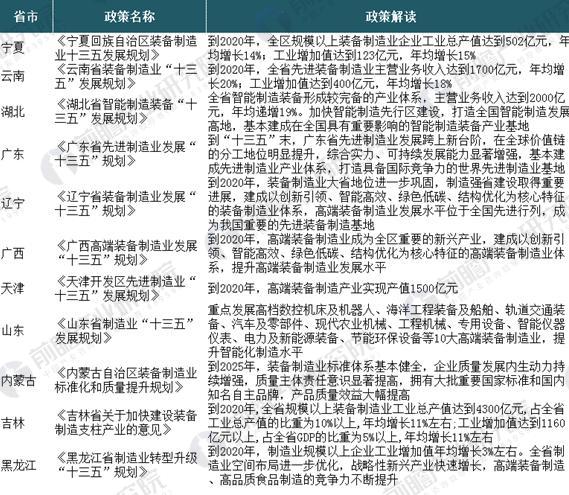 各省市高端裝備制造政策匯總及解讀