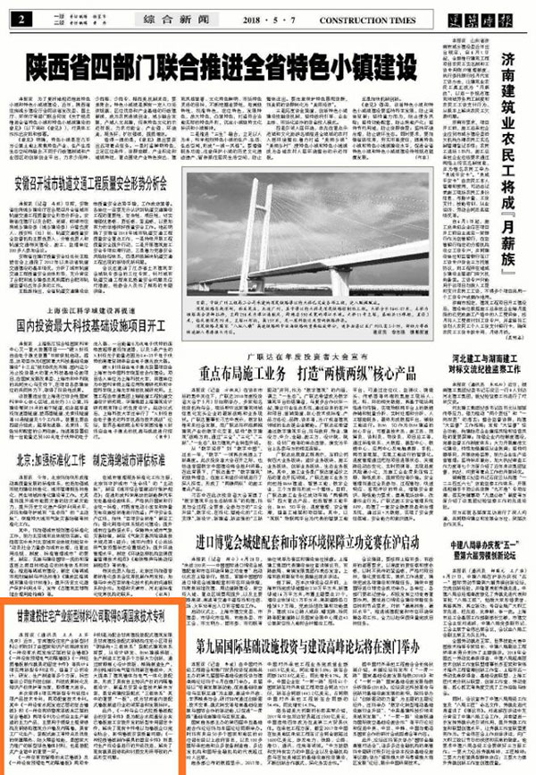 建筑時報:甘肅建投住宅產(chǎn)業(yè)新型材料公司取得6項國家技術專利